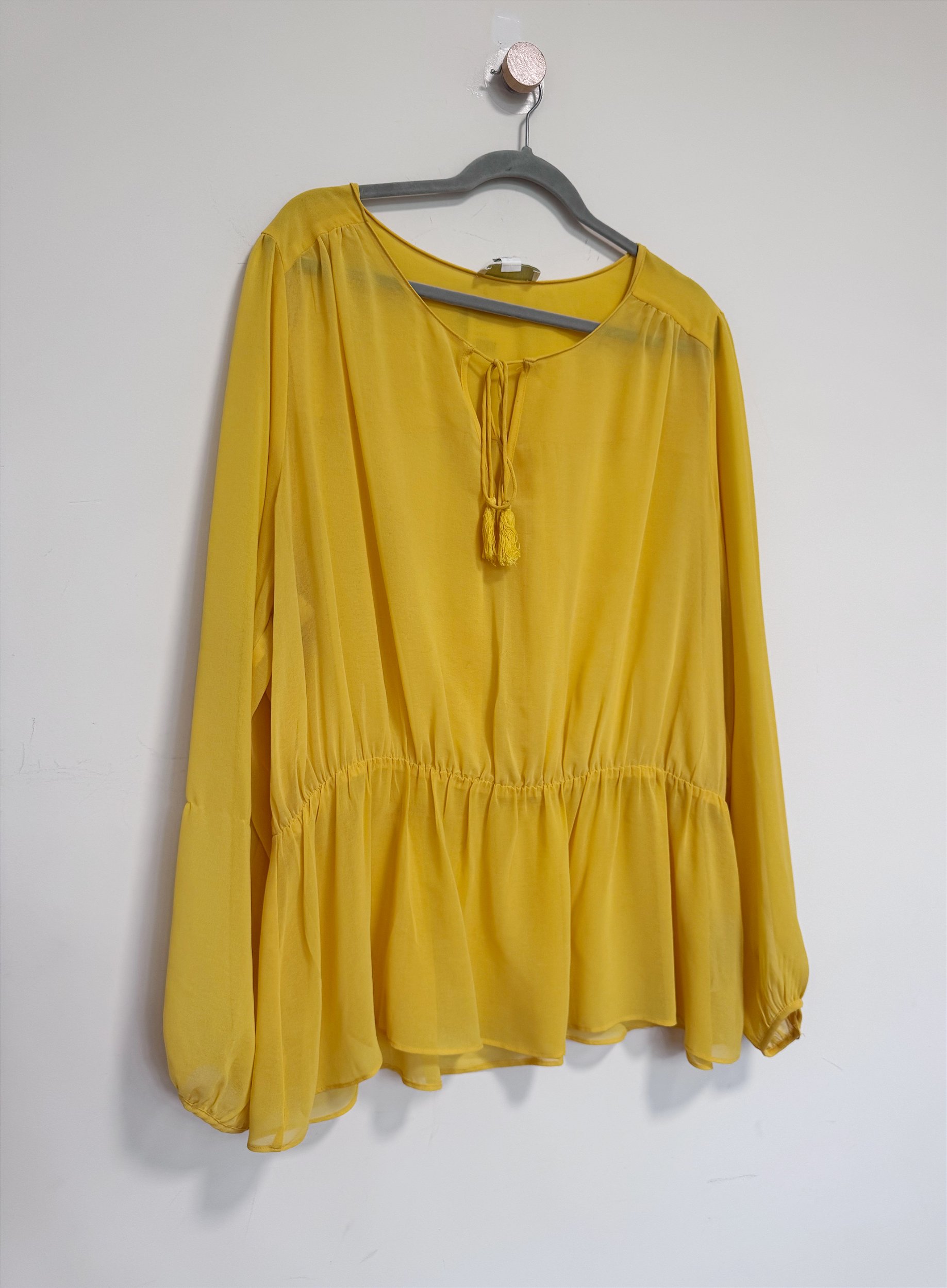 Bata em tecido com transparência. Possui ajuste na cintura e cordões no decote. Tamanho g