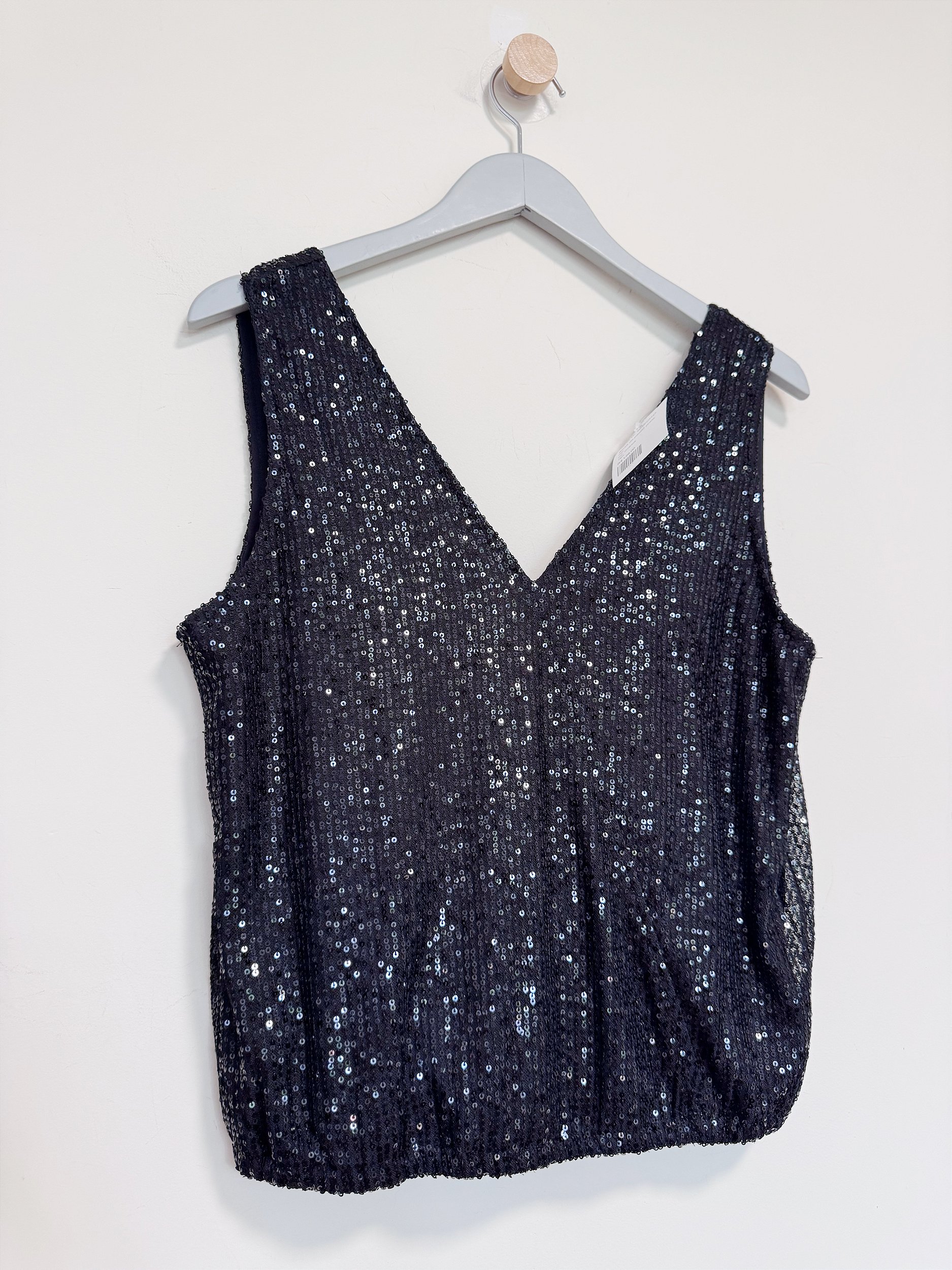 Blusa confeccionada em tecido paetê com forro e modegalem trasnpassada. Tamanho M
