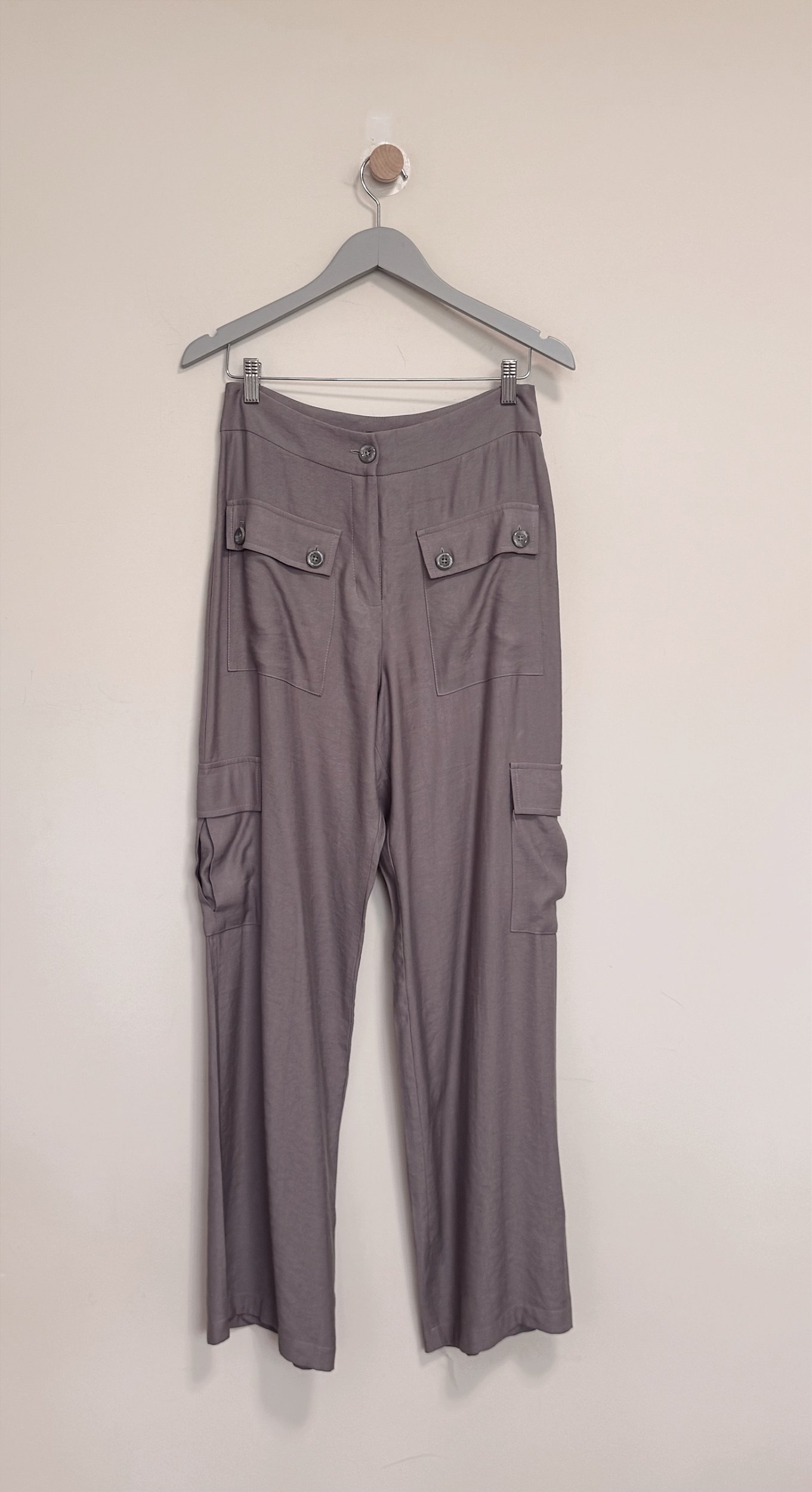 Calça confeccionada em viscose com modelagem wide leg e bolsos laterais. Cintura alta. Tamanho M