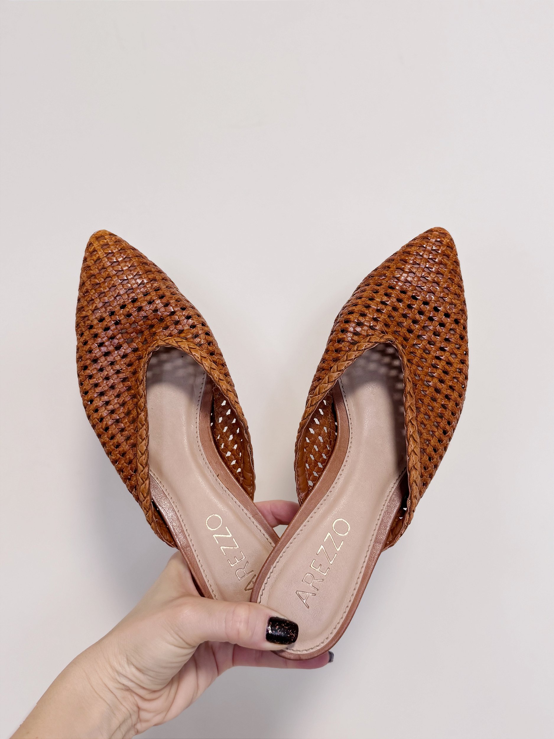 Mule em couro com salto baixo redondo em madeira. tamanho 36